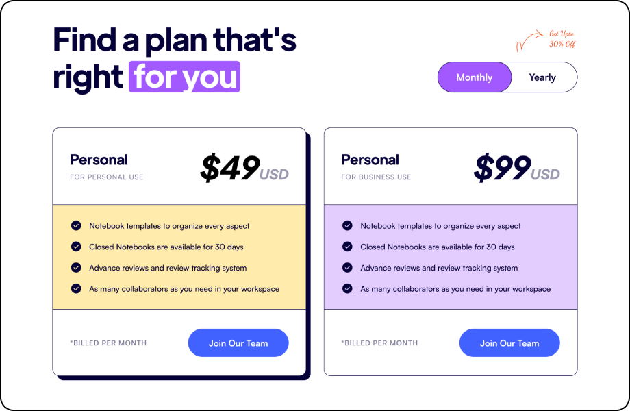 Turn more visitors into customers with a convincing pricing page.